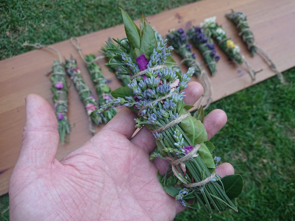 We have been busy harvesting our herbs and crafting smudge sticks during the Solstice period. We found it to be the perfect time as many of our herbs and flowers were peaking in tune with the sun.