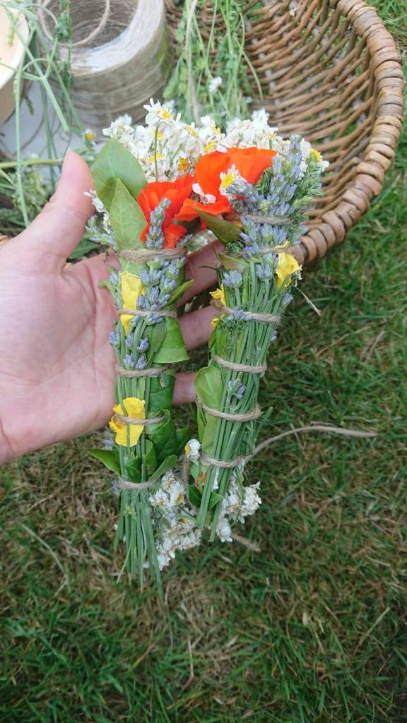 We also crafted some beautiful Solar smudge sticks blending flowering Feverfew & Nasturtium paired with Bay, Lemon balm, Lavender & golden Marjoram. Holding the essence of the summer solstice & solar energy these plants are thought to ease tension & worry and promote peace & lightness.