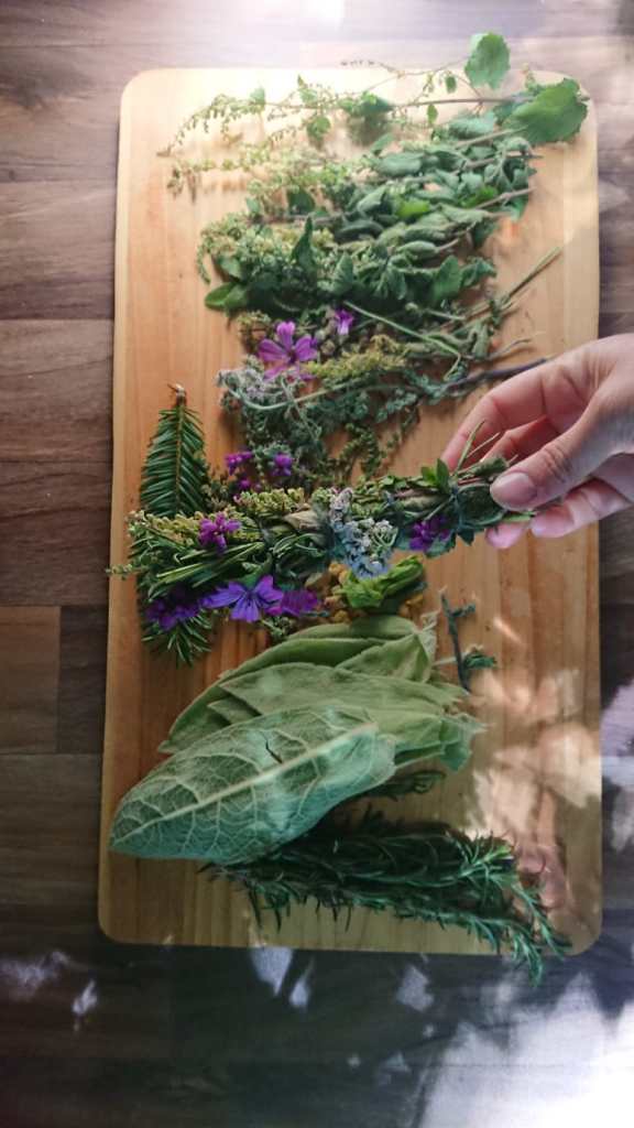 I gathered some flowering wood Sage, that was growing ferociously in a beautiful woodland. Combined with some ancient & magical wildflowers including Yarrow, Red Clover, Mallow flowers and Meadowsweet I wrapped them in a Mullein leaf and finished with flowering heather.