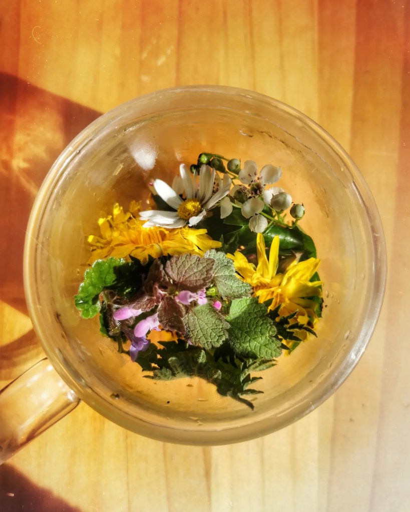 A practice I find incredibly grounding at this time of year is to get outdoors and gently gather some beautiful fresh Spring plants for a brew.