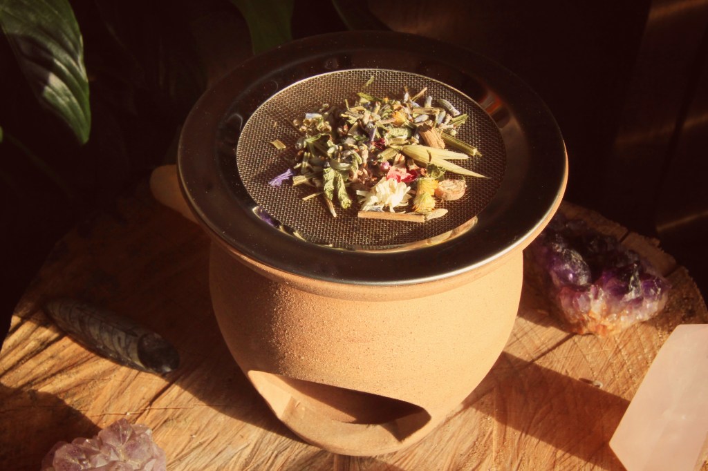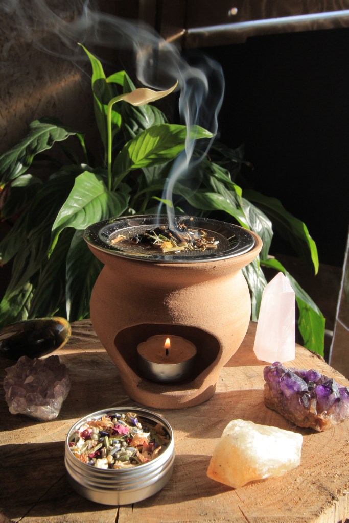 Crafted from earthy clay, the ceramic burners are topped with a mesh disc. This allows the herbs to sit above a tealight candle and gently smoulder, burning without the need for charcoal which makes them ideal for indoor use.