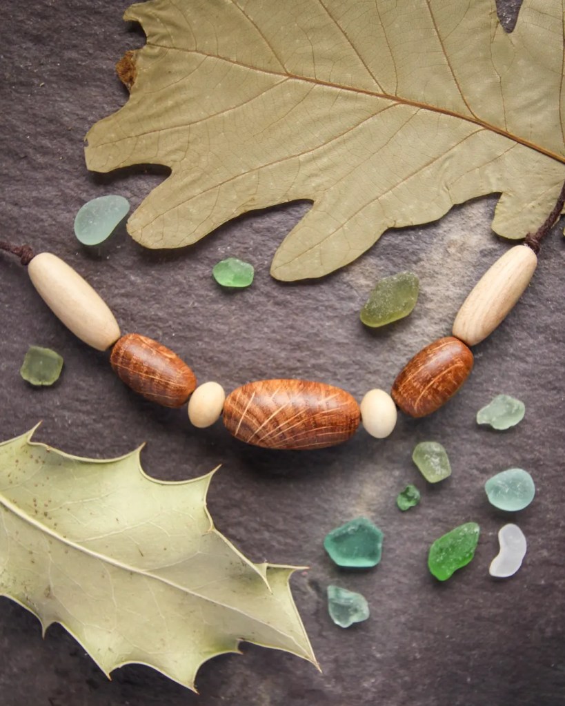Oak wood is one of the strongest in the world and it is not surprising that it symbolises Strength, Stability, Grounding and Balance. Bone Oak is is the inner heartwood of an Oak tree and is extremely strong. It has rare and beautiful markings that can be seen in our Oak Sun and Moon pendants below.