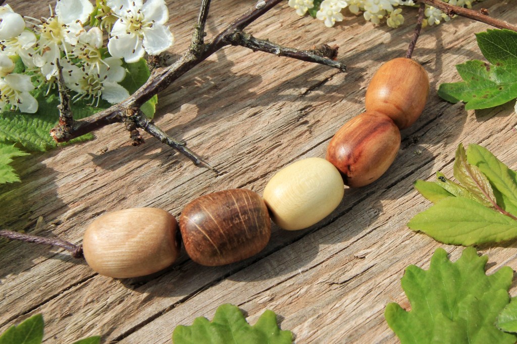 We wanted to create a piece which would celebrate the Hedgerow and includes 5 beads turned from Hazel, Oak, Elder, Hawthorn and Blackthorn woods. Whilst there are many species that can make up a hedge, these 5 trees are frequently found, feed huge numbers of species and feel to us to embody this magical habitat.