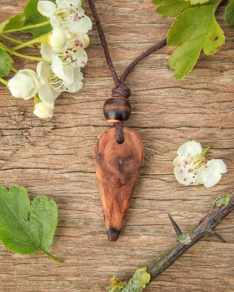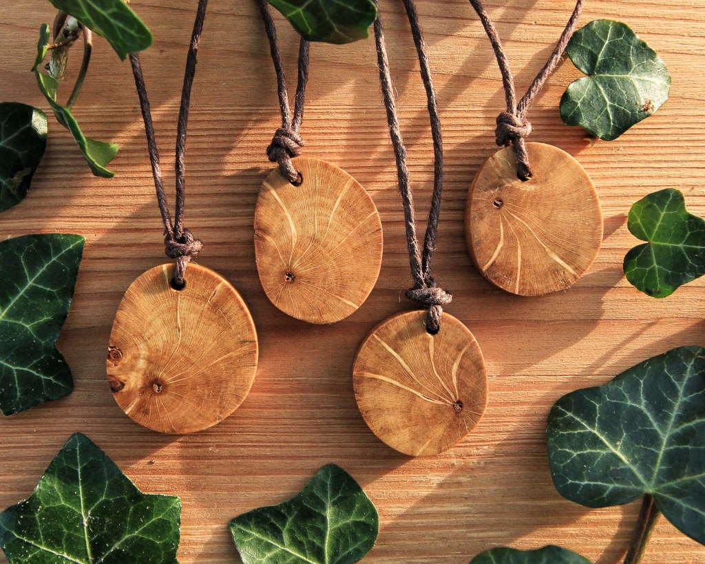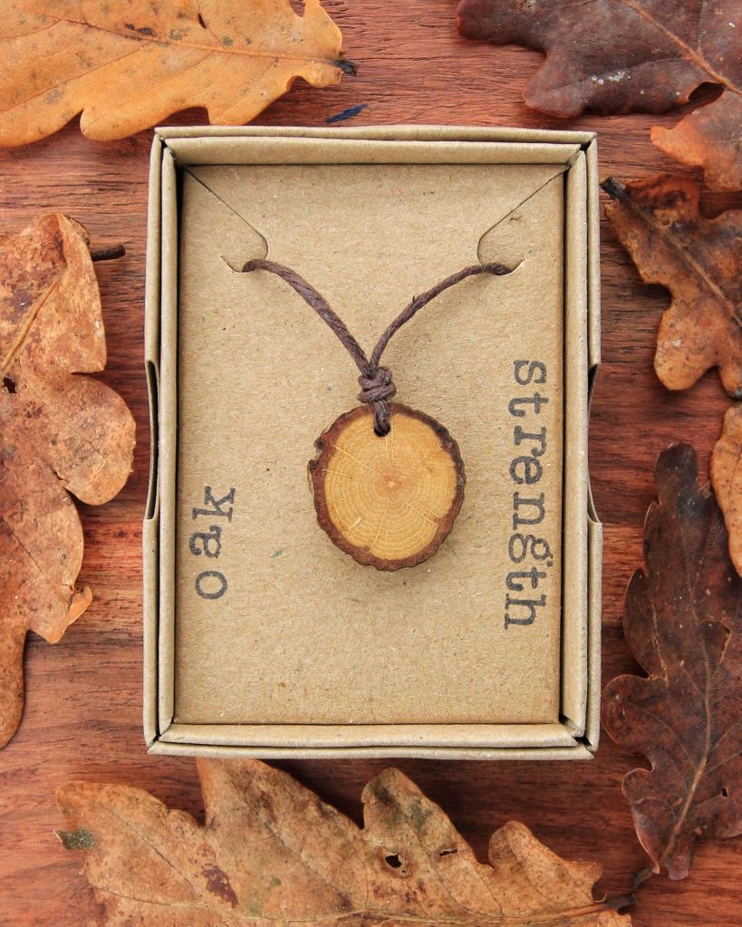 We craft our unique and intentional pendants from windfallen wood to celebrate the beauty and magic of the woodland and the supportive energy of trees. Each piece of wood is respectfully gathered in kinship with nature, carved and smoothed to celebrate the unique story and energy it holds.