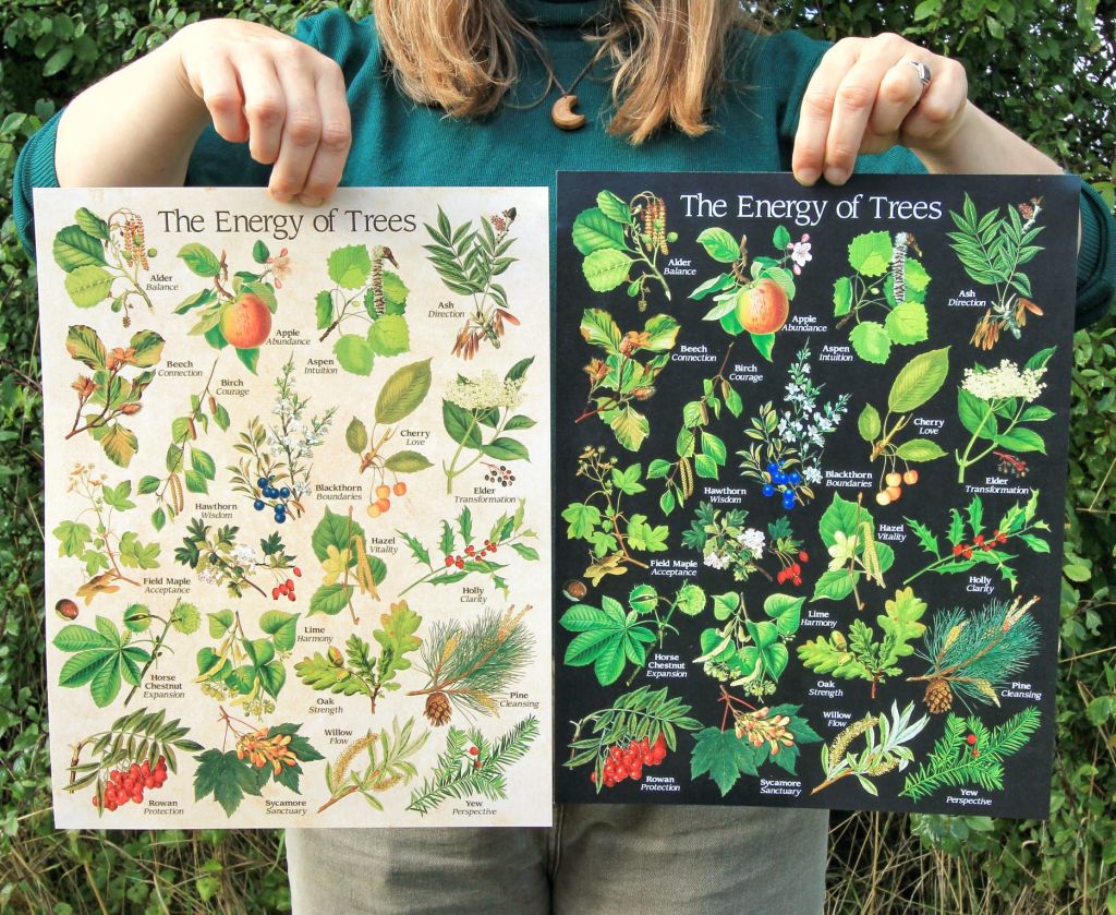 Our brand new print, celebrates our love for trees and their magical energy. We created a dark and light version of this print, adapting historical botanical drawings and including our interpretations of each tree’s energy.
